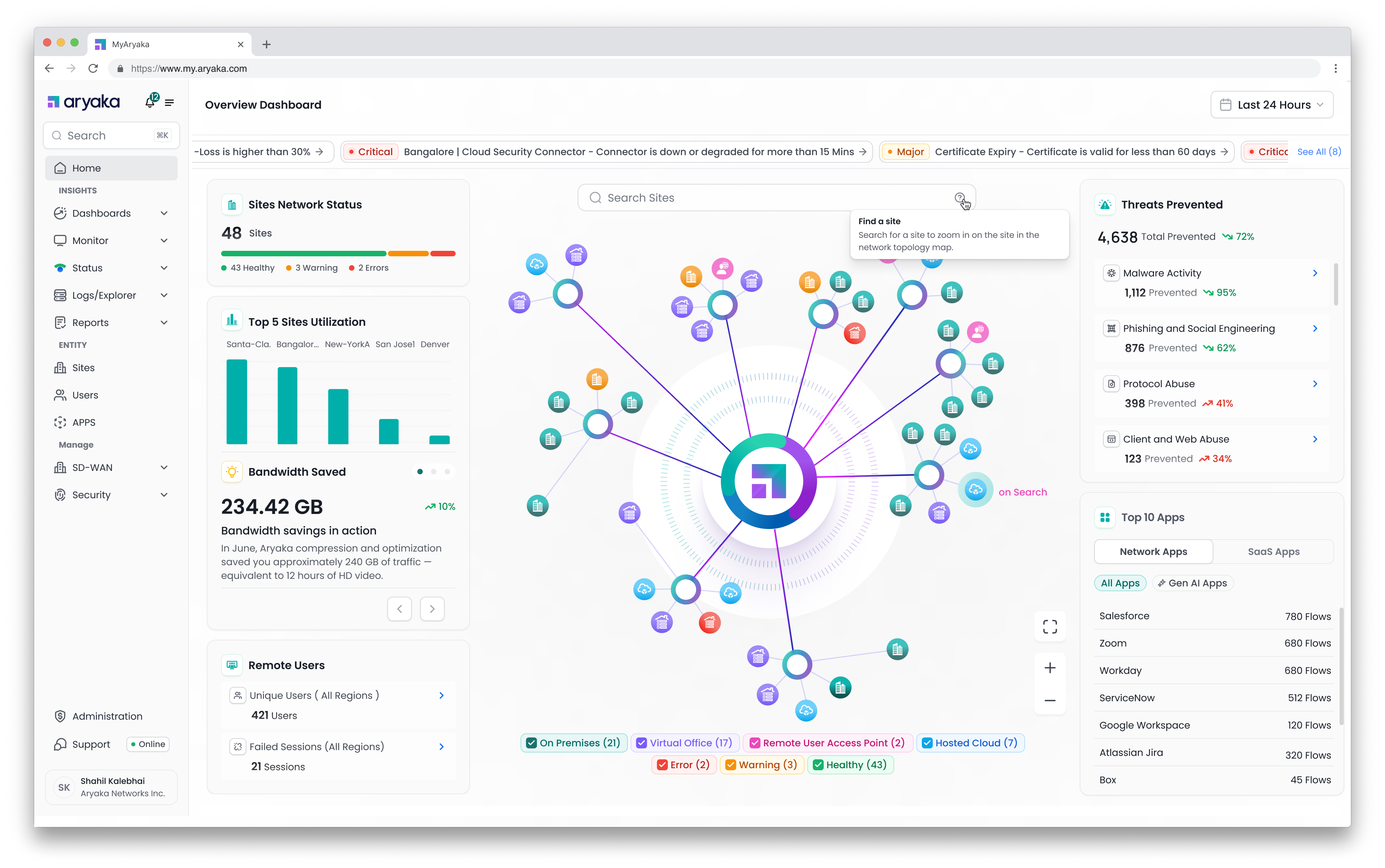 This insight led us to reimagine the home page as a strategic command center that brings together SD-WAN and Security (SASE) in one unified view.