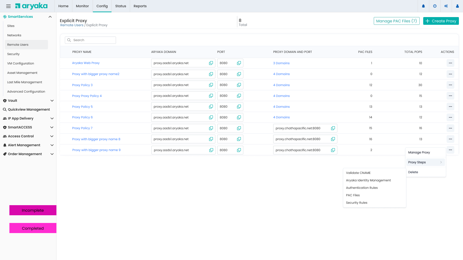Centralized view of all proxies with quick access to management actions